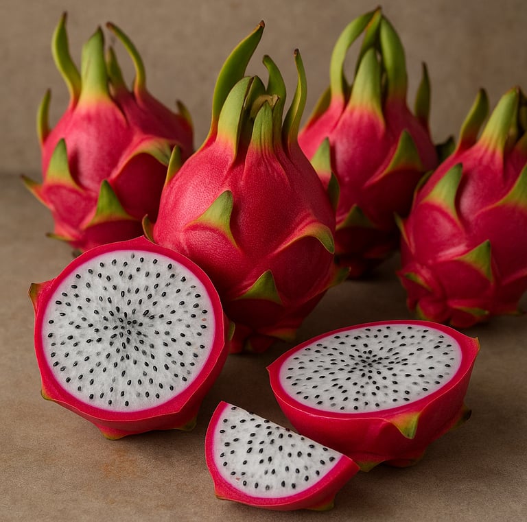 We provide a variety of fresh fruits including bananas, plantains, and exotic options like dragon fruit.